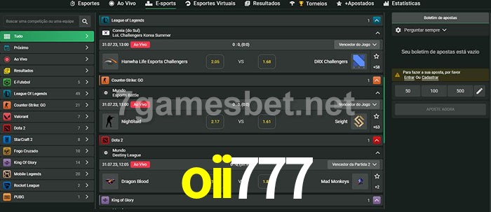 A aposta oii777 oferece aos jogadores a experiência mais conveniente de apostas em eSports!